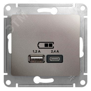 Розетка Schneider Electric Glossa (цвет платина) двойная USB с разъемами типа A+C. Выполнена из материала PС+ASA, стойкого к УФ-излучению и появлению царапин. Самая современная USB-зарядка с двумя разъемами позволяет заряжать как стандартные мобильные устройства через разъем типа А, так и новейшие устройства, в том числе ноутбуки, с разъемом типа С.