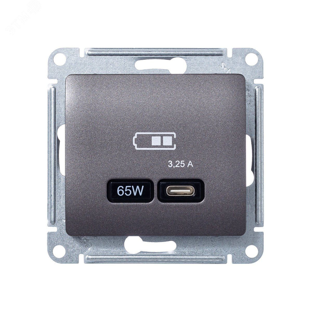 Розетка Systeme Electric серии Glossa (цвет графит) USB с разъемом типа C высокоскоростная. Самая современная USB-зарядка позволяет заряжать ноутбук, а также смартфоны последнего поколения, которые поддерживают функцию быстрой зарядки. Мощность, тип-С - 65Вт. Поддерживает современные протоколы быстрой зарядки QC, PD, последних версий. Лицевые детали из качественного ABS-пластика, устойчивого к царапинам и УФ-излучению.