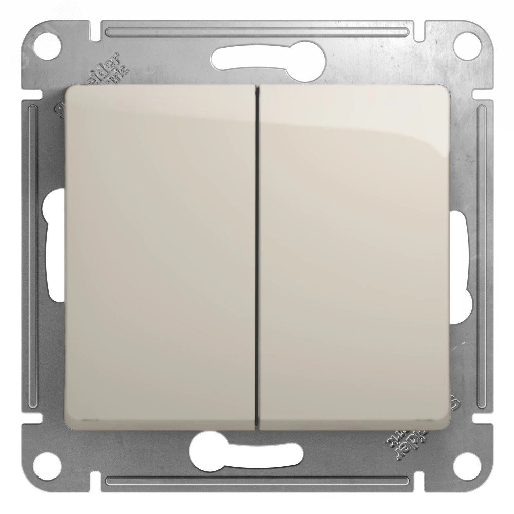 Механизм Systeme Electric (ранее Schneider Electric) серии Glossa (цвет молочный) выключателя 2-клавишного подходит для сетей 250 В, на ток 10 А. Двухклавишный выключатель позволяет управлять двумя источниками света с одной точки. Выполнен из материала PС+ASA, стойкого к УФ-излучению и появлению царапин. Эргономичные клеммы расположены в два ряда - сверху и снизу.
