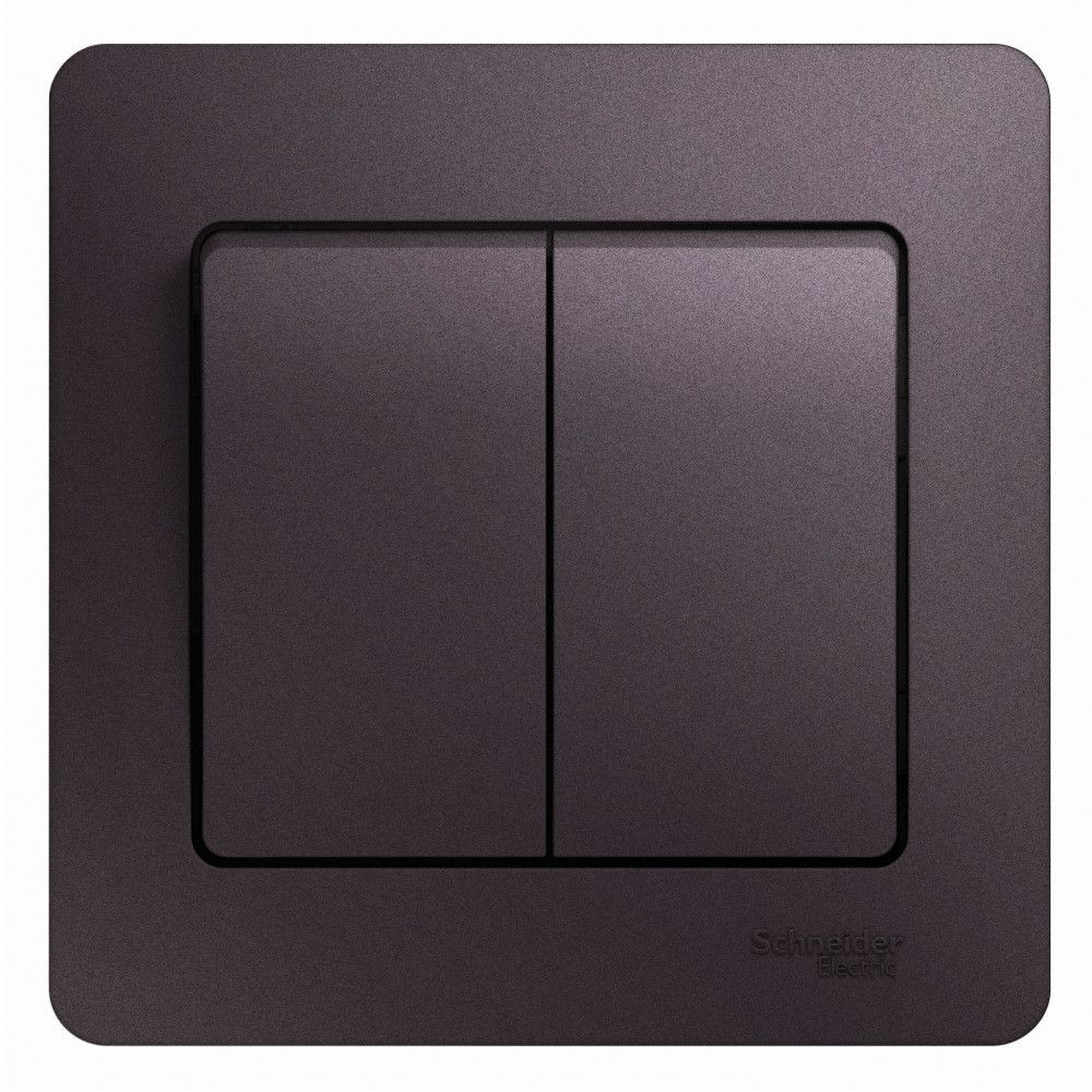 Выключатель Systeme Electric (ранее Schneider Electric) серии Glossa (в сборе, цвет сиреневый туман) двухклавишный подходит для сетей 250 В, на ток 10 А. Двухклавишный выключатель позволяет управлять двумя источниками света с одной точки. Выполнен из материала PС+ASA, стойкого к УФ-излучению и появлению царапин. Эргономичные клеммы расположены в два ряда - сверху и снизу.