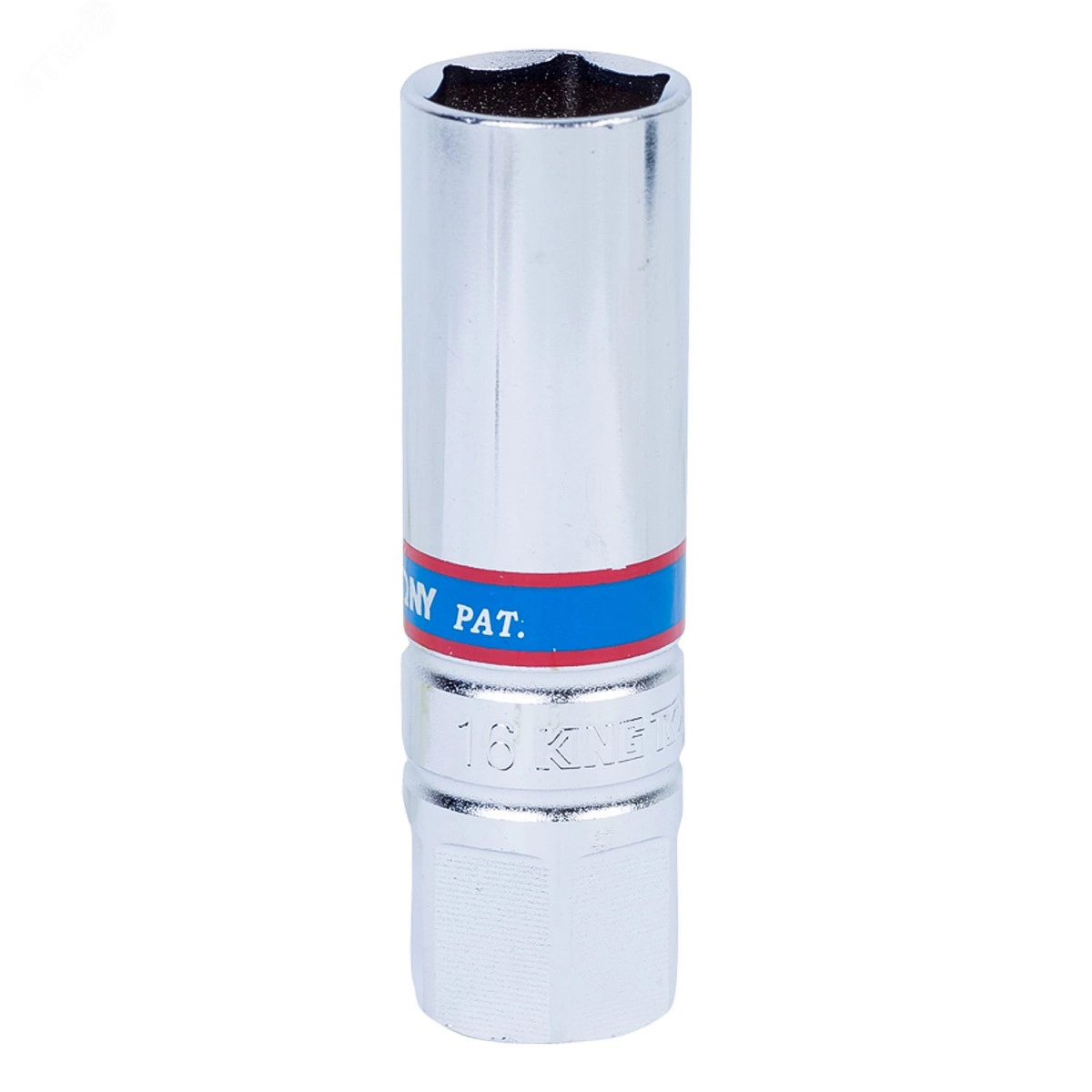Головка свечная шестигранная 3/8', 16 мм, L = 70 мм, резиновый фиксатор