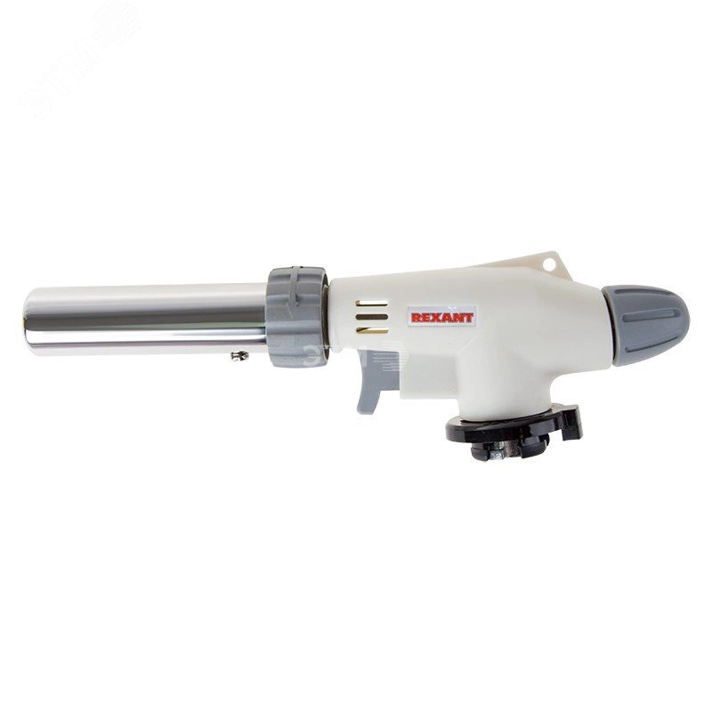 Газовая горелка-насадка REXANT GT-31 360? с пьезоподжигом. Новинка в России! Теперь всего лишь через 10 секунд прогрева такую горелку можно использовать в любом положении — горизонтально, под углом и вверх ногами. Все это возможно благодаря обновленной конструкции с функцией предварительного нагрева топлива! Теперь жидкий газ не сразу идет из баллона в сопло горелки, а предварительно проходит по змеевику внутри него, там он предварительно нагревается, и Переходит из жидкого состояния в газообразное. Таким образом, в змеевике создается газовая пробка, не позволяющая жидкому газу свободно вытекать в сопло. Также отличается наличием керамического обода внутри сопла, это позволяет горелке дольше работать непрерывно, без опасения за перегрев.