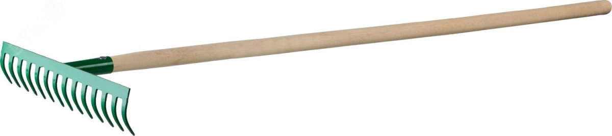 Грабли стальные 355x80x1500 мм, 14 прямых зубьев, деревянный черенок