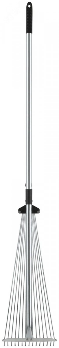 Грабли веерные регулируемые, телескопические. Для уборки листьев и скошенной травы. 15 раздвижных зубьев (180 - 630 мм). Телескопическая ручка. Материал - инструментальная сталь, закаленные зубья, пластиковая накладка на черенок.