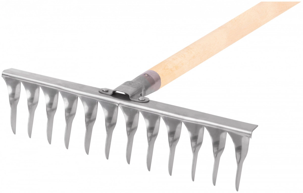 Грабли, витой зуб, нержавеющая сталь, 12 зубьев, с деревянным черенком