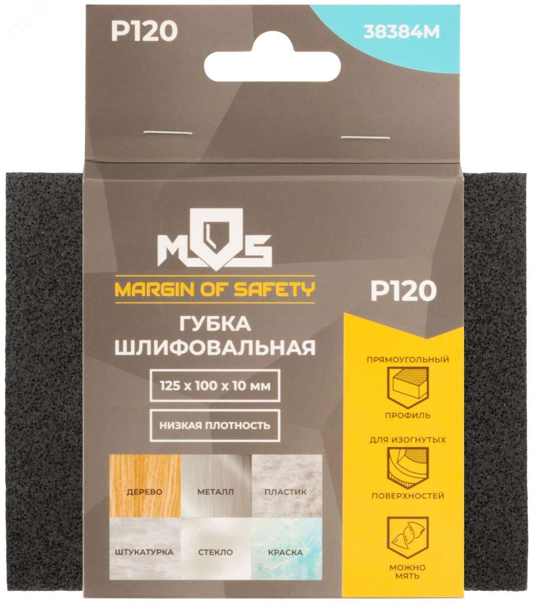 125х100х10 мм. Водостойкая. Мягкая. Для сухого и мокрого шлифования поверхностей со сложным рельефом и работы в труднодоступных местах. По дереву, металлу, пластику, штукатурке, камню, стеклу. Большая рабочая поверхность способствует плотному прилеганию и позволяет шлифовать круглые и кривые предметы. Материал - алюминий-оксидный абразивный слой, поролоновая основа. Упаковка - картонный подвес.