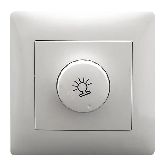 Механизм диммера предназначен для коммутации и регулирования яркости ламп накаливания и галогеновых ламп. При повороте ручки регулятора происходит регулирование, в крайнем левом положении выключение. Устанавливается в монтажные коробки или специальные монтажные полости при скрытой проводке электрических сетей. Диммер позволяет производить монтаж, как при помощи распорных лапок, так и на резьбовые элементы в монтажной коробке.