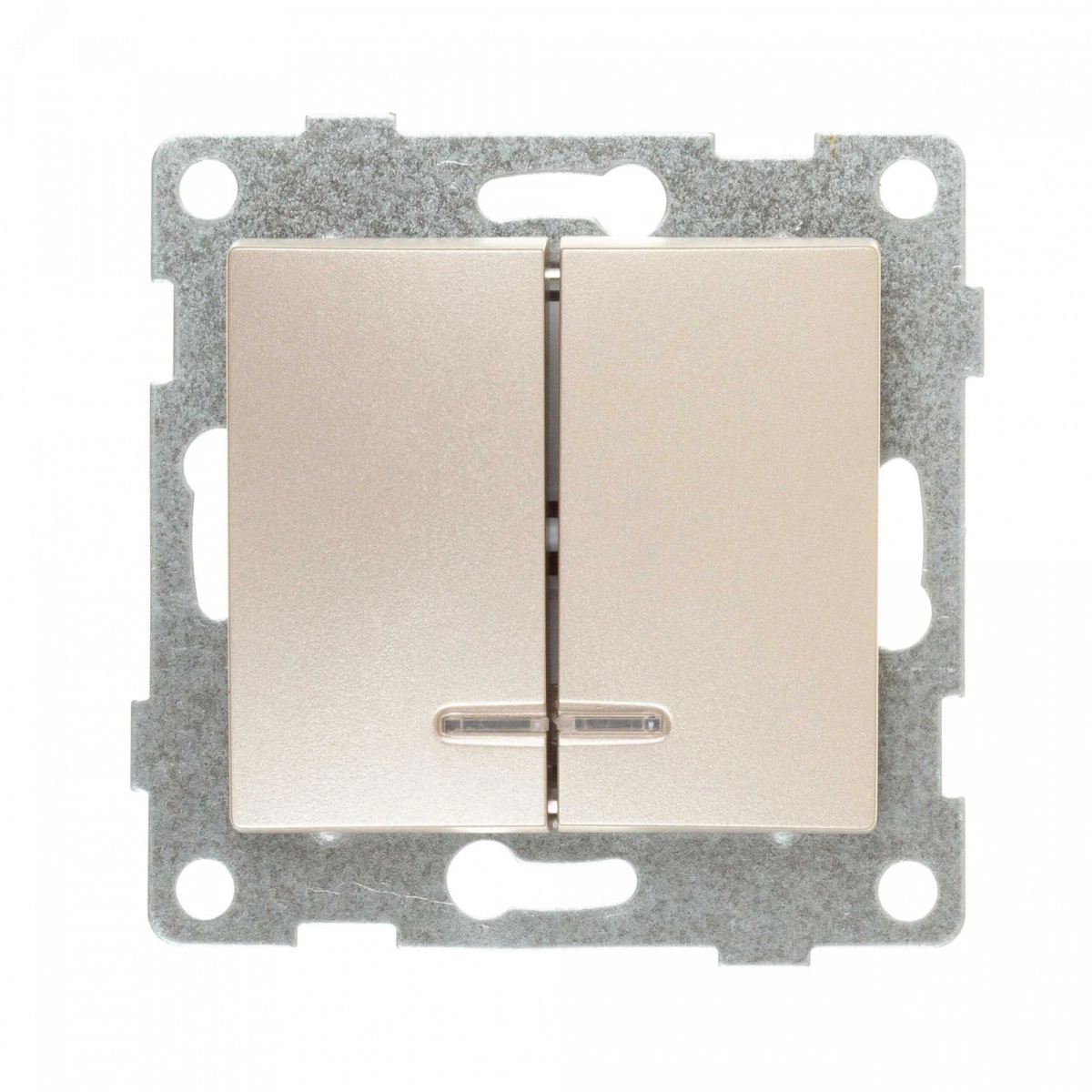 Полное описание: GUSI Bravo МЕХАНИЗМ Выключатель двухклавишный со светоиндикацией, скрытая установка, 10А, 250В. Цвет: шампань