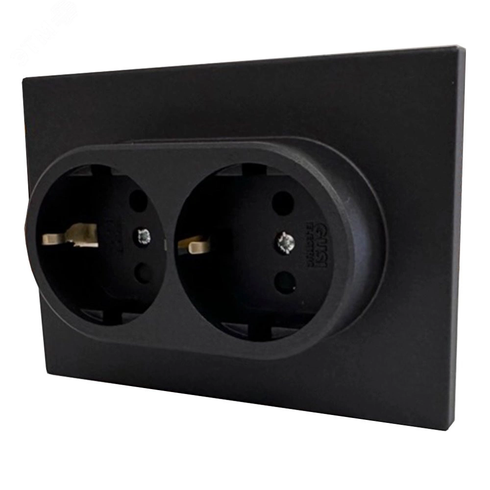 GUSI Ugra механизм розетки двойной с заземлением с защитной шторкой, скрытая установка, 16А, 250В. Цвет графит