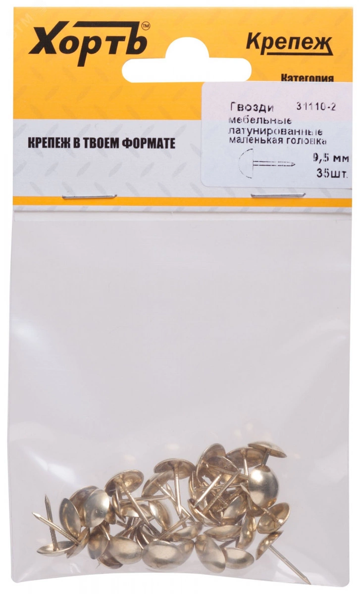Гвоздь мебельный 9.5мм латунированный (45шт)