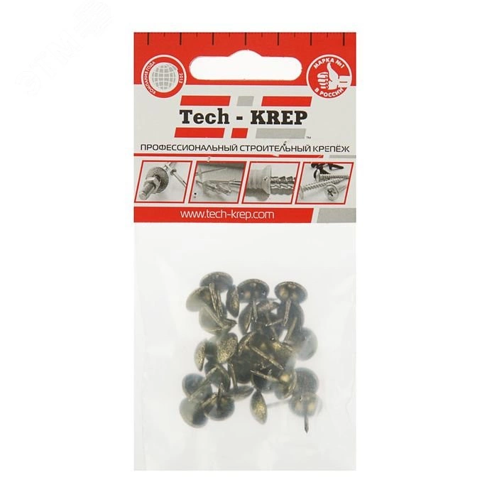 Полное описание: Гвозди декоративные Сфера 11 мм, 1,3х16 мм, Антик (30шт) - пакет Tech-Krep