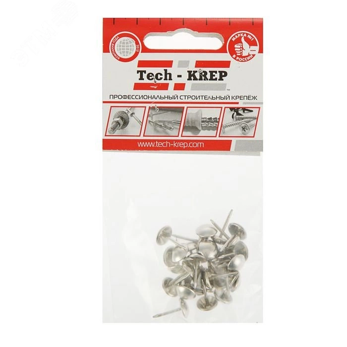Полное описание: Гвозди декоративные Сфера 9,5 мм, 1,3х16 мм, Никель (30шт) - пакет Tech-Krep