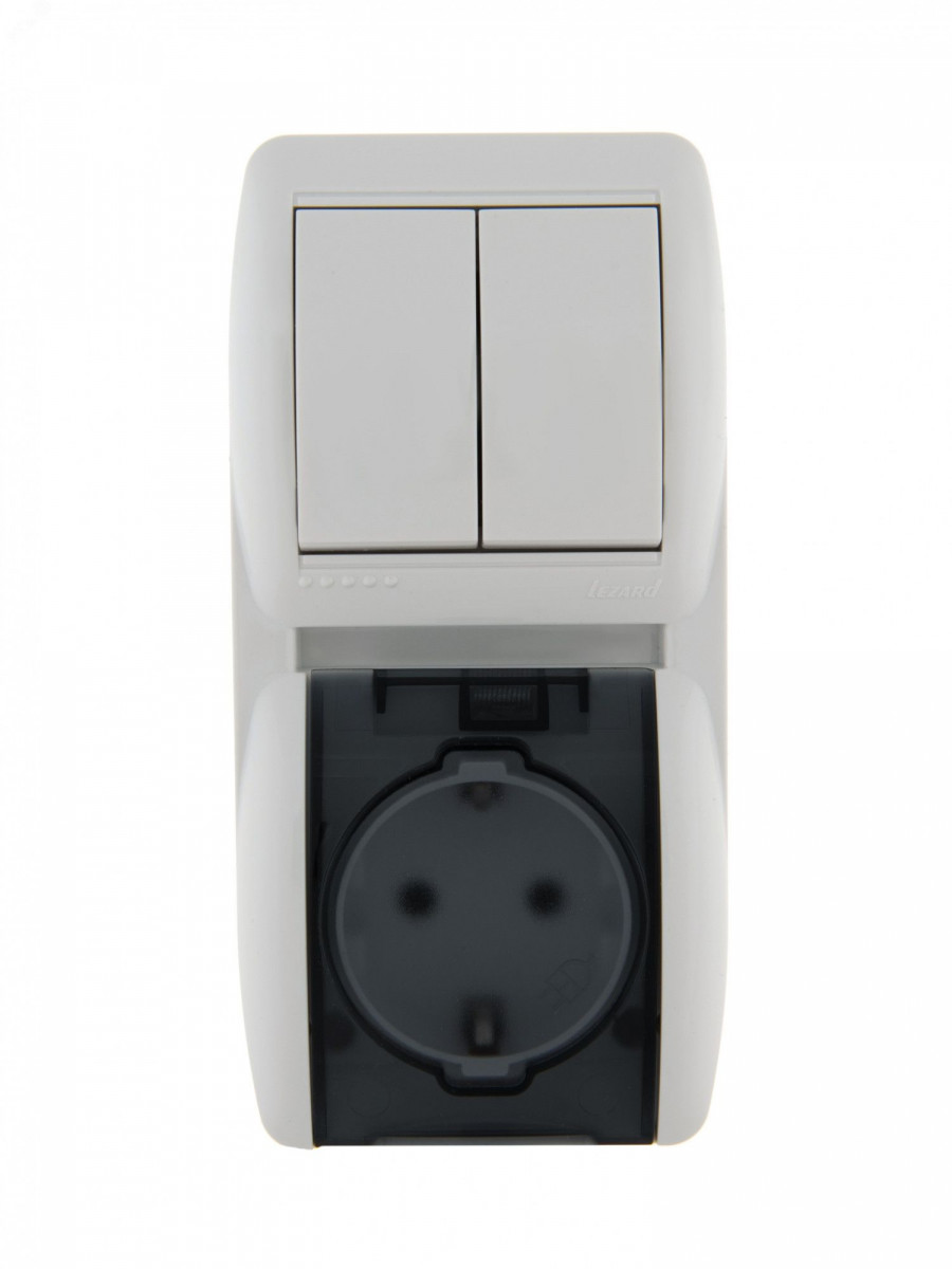 Полное описание: HATA Выключатель двухклавишный с розеткой с заземлением и крышкой белый, вертикальный