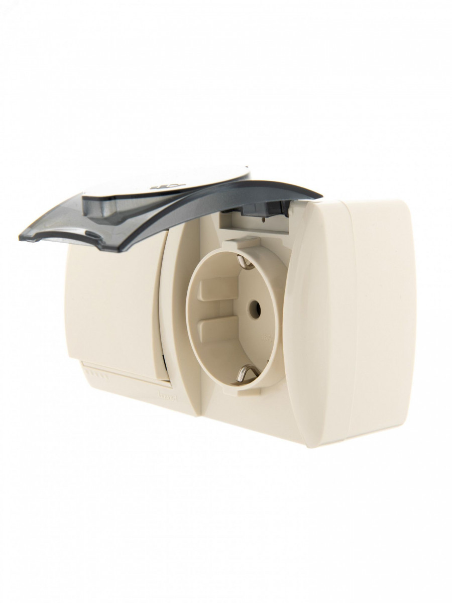 Полное описание: HATA Выключатель с розеткой с заземлением и крышкой бежевый, горизонтальный