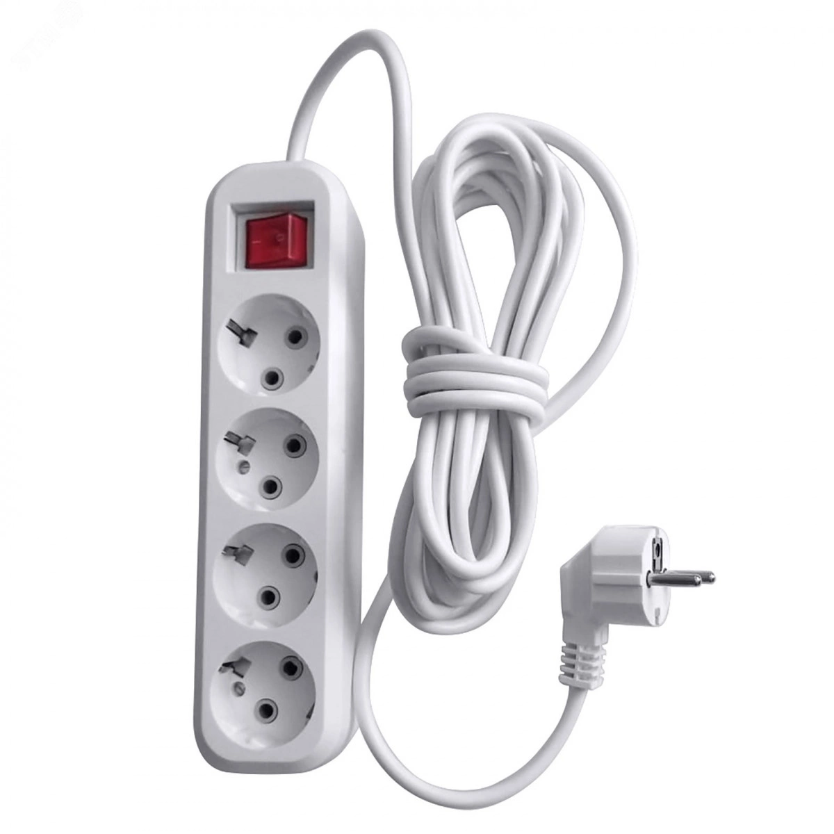 HM03-41-07 Удлинитель 4-местный с/з с выключ., 3x0,75мм2, 7м, 250В, 10А, сер Home (У10А-003), белый