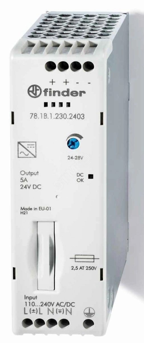 Полное описание: Импульсный источник питания, вход 120...240В AC/220В DC, выход 24В DC, 120Вт, компактный, степень защиты IP20