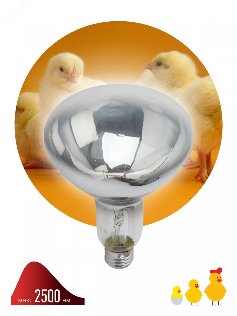 Инфракрасная лампа ИКЗ 220-250 R127 E27, кратность 1 шт., для обогрева животных и освещения, 250 Вт, Е27