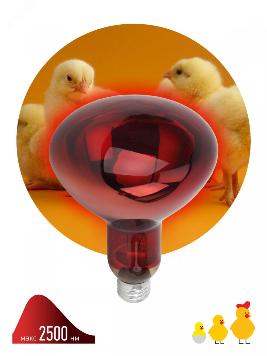 ИКЗК 220-250 R127 ЭРА Инфракрасная лампа ЭРА ИКЗК 220-250 R127 с красной колбой активно используется в животноводстве, птицеводстве и растениеводстве. Максимальная тепловая мощность без яркого света. Идеальна для стабилизации теплового баланса новорождённых и молодых животных. 100% энергии переходит в тепловую. Работа лампы не зависит от скачков сети, микроимпульсов. Не требуются стабилизаторы напряжения лампа работает даже при пониженном напряжении. Мгновенно включается и нагревается. Минимум пульсаций освещения. Компактные размеры. Внимание: лампочка используется только с керамическими цоколями (с пластиковыми не использовать)!