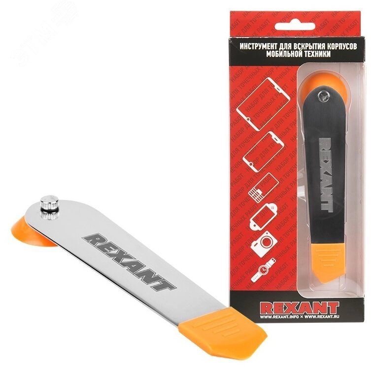 Инструмент REXANT RA-07 предназначен для быстрого и безопасного вскрытия корпусов смартфонов, планшетов, ноутбуков, коммуникаторов, PlayStation. Выполнен из высококачественной стали. Рабочие части инструмента изготовлены из ударопрочного пластика и подходят для ремонта устройств с более хрупкими, мягкими дисплеями. С одной стороны располагается тонкий нож для 'поддевания' экрана, с другой – ролик для произведения равномерного отсоединения экрана от корпуса техники.