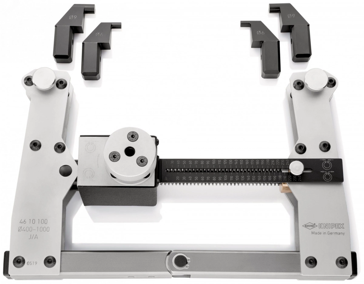 Съёмник универсальный для стопорных колец универсального применения для больших стопорных колец с номинальным внутренним диаметром 400 -1000 мм. надежное открытие и закрытие колец и удержание за счет самотормозящегося прецизионного привода ходовым винтом. монтаж или демонтаж стопорных колец за одну рабочую операцию. надежное удержание кольца благодаря коротким, прямым креплениям. сменные наконечники диаметр 6 мм и 9 мм, для различных диапазонов диаметров. управление по выбору с помощью ключа с внутренним шестигранником, ключа с трещоткой или шуруповерта с питанием от аккумулятора. области применения - везде, где с помощью больших валов и подшипников должны передаваться очень большие усилия и крутящие моменты, например, ветровые и приливные электростанции, производство генераторов, гидроэлектростанции, тяжелое машиностроение (прокатные станы, прессы), судостроение, авиация и космос