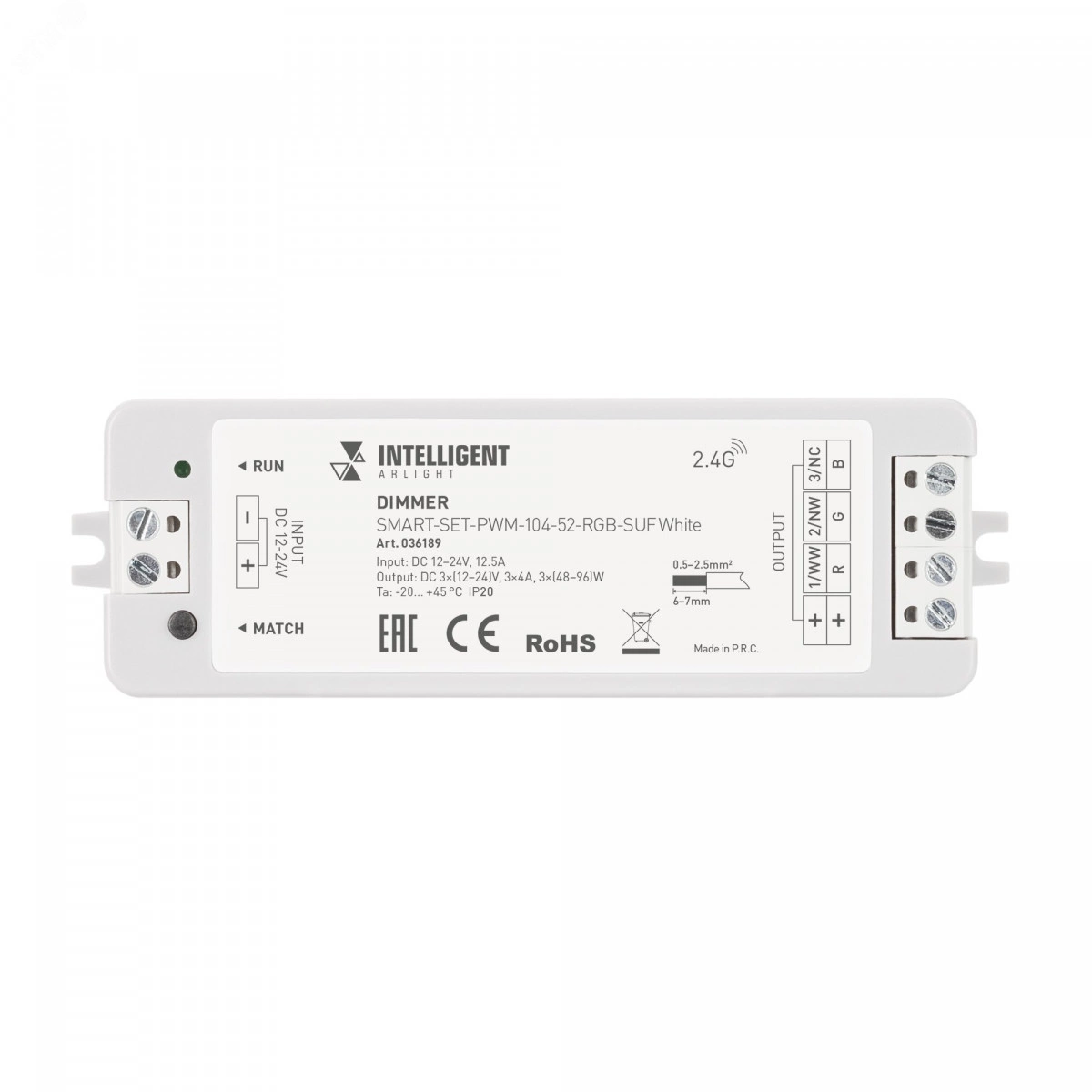 INTELLIGENT ARLIGHT Диммер SMART-SET-PWM-104-52-RGB-SUF White (12-24V, 3x4A, ПДУ LINE, 2.4G) (IARL, IP20 Пластик, 5 лет)