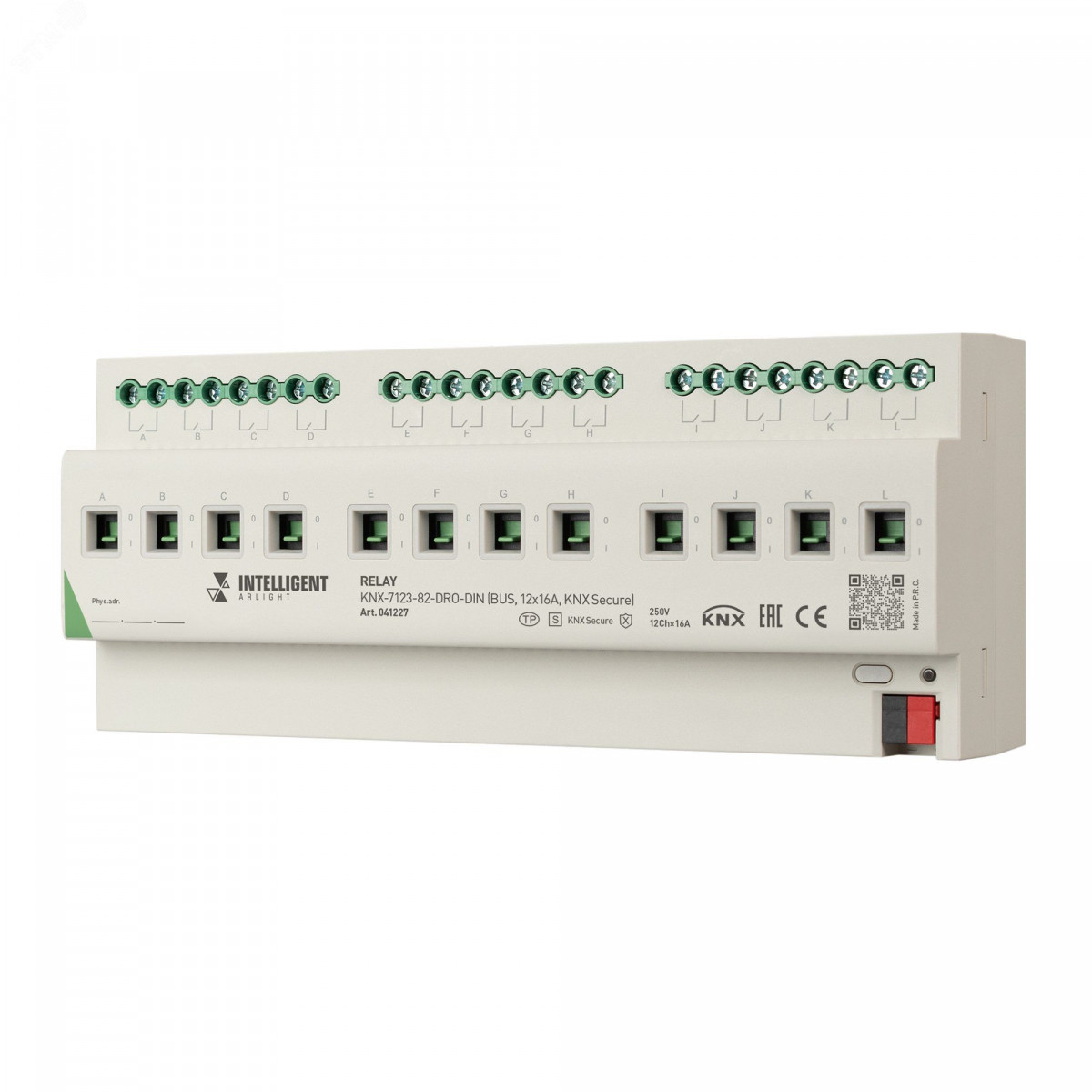 INTELLIGENT ARLIGHT Релейный модуль KNX-7123-82-DRO-DIN (BUS, 12x16A, KNX Secure) (IARL, IP20 Пластик, 2 года)