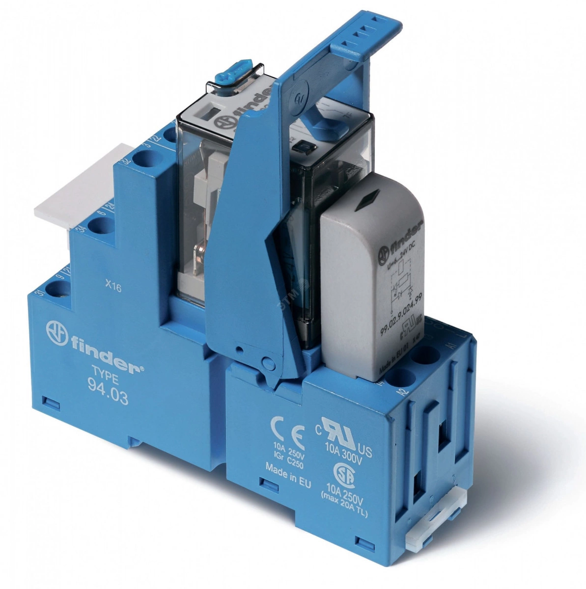 Интерфейсные модули реле, Пластиковая клипса-держатель, Светодиод, Контакты AgNi, 3CO 10A, 24VAC, Блистерная упаковка с 1 реле,