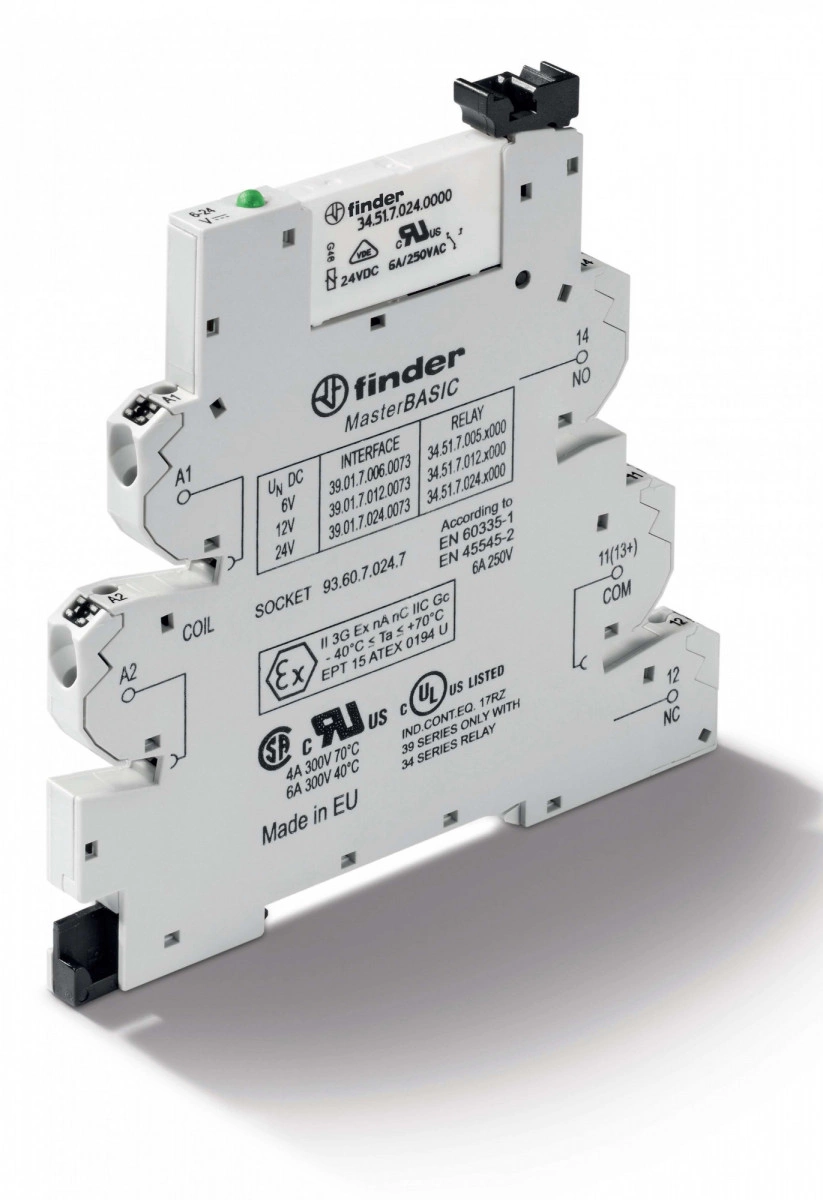 Интерфейсный модуль, электромеханическое реле, серия MasterBASIC, 1CO 6A, питание 6В AC/DC, категория защиты IP20, безвинтовые клеммы Push-in, версия EMR ATEX