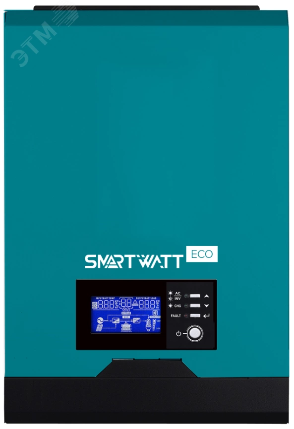 Многофункциональный инвертор SmartWatt ECO 3K 24V 60А MPPT применяется в солнечных и резервных станциях мощностью до 3 кВт. Для заряда аккумуляторов от солнечных панелей в инверторе используется MPPT контроллер на 60А. В инверторе предусмотрена гибкая настройка различных параметров - зарядный ток акб, выставление приоритета источников питания зарядного устройства, выбор допустимого диапазона входного напряжения для различных применений