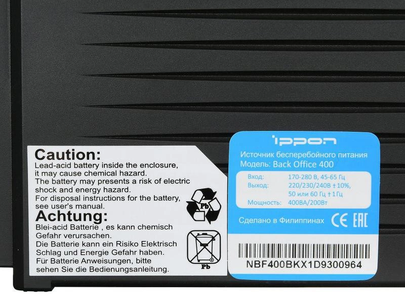 Полное описание: Источник бесперебойного питания Back Office 1000 600Вт 1000В.А черн. IPPON 582021