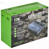 ITK ELECTRA LT5 - Линейно-интерактивный ИБП для обеспечения непрерывного питания электронного оборудования в офисах и бытовом применении. Он обеспечивает защиту от скачков напряжения, перебоев в электросети и потерь электропитания, а также обеспечивает комфорт и уверенность при работе с персональным компьютером, офисной техникой и сопутствующей периферией. ИБП прост в эксплуатации и оснащен 5 розетками SCHUKO и LCD дисплеем с USB разъемом. В ИБП встроена 1 свинцово-кислотная батарея на 9Ач.