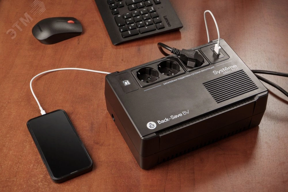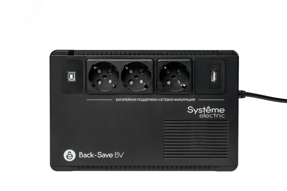 ИБП серии BVSE позволяют не прерывать работу в случае перебоев электропитания умеренной продолжительности, а при более длительных - гарантируют автоматическое корректное завершение работы компьютера. Кроме того, они обеспечивают защиту аппаратуры от повышенного напряжения и скачков напряжения, распространяющихся по сетям электропитания. ИБП серии BVSE оснащены встроенным стабилизатором напряжения, который корректирует провалы и скачки напряжения до безопасного уровня, что особенно важно для регионов с плохим качеством электросети. Это также экономит ресурс батареи, корректируя колебания напряжения без перехода в режим питания от батареи. Предназначен для офисных и домашних применений. Способен питать маломощные устройства такие, как модем или маршрутизатор, а такжеустройства высокой мощности - ПК и игровые приставки.
