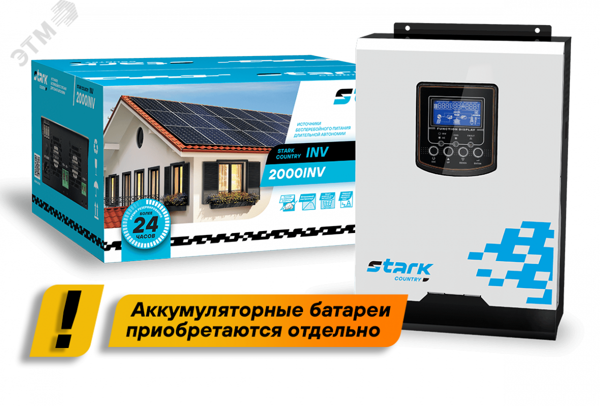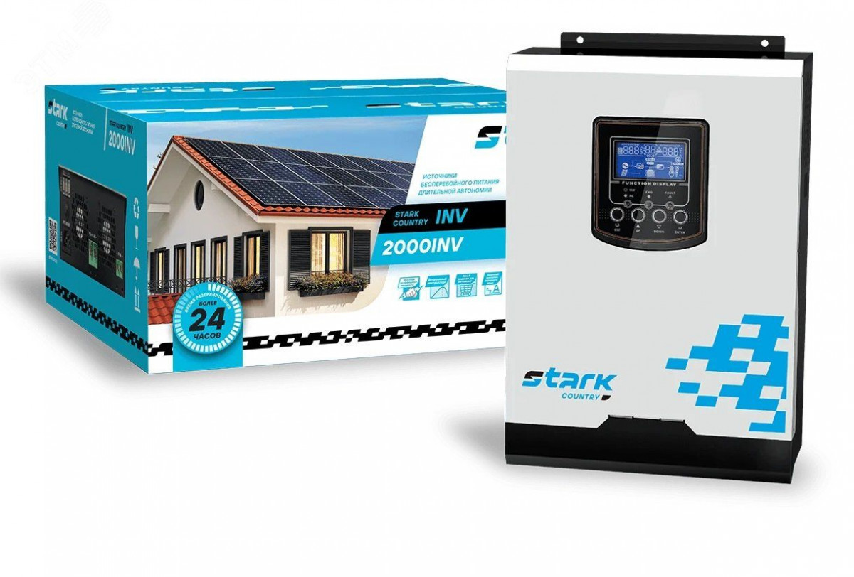 Однофазный ИБП STARK COUNTRY 2000 INV производится мощностью 2000 ВА/2000 Вт в настенном форм-факторе. Его главная особенность — работа в паре с солнечными панелями (внутри источника установлены встроенные контроллеры). Это позволяет использовать источник для питания мобильных домов, яхт и позволяет не зависеть от перебоев сети. Также со временем можно наращивать мощность - параллельно могут работать до 3 ИБП. Однофазный оффлайн источник бесперебойного питания STARK COUNTRY 2000 INV совместим с любыми видами генераторов. Он обеспечивает потребителей качественным током — напряжение на выходе с батарей имеет форму чистой синусоиды. Помимо этого, ИБП имеет широчайший диапазон настроек, что позволяет адаптировать его под любые запросы. Максимальный ток зарядного устройства -10 А. Максимальная емкость заряжаемых аккумуляторов 150 Ач. Количество последовательно соединенных аккумуляторов - 1 шт.