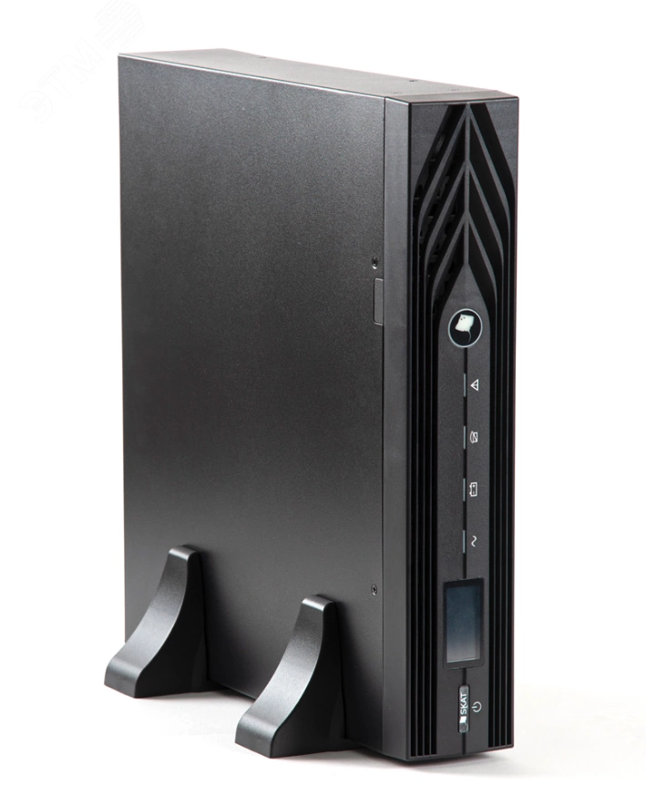 220В, 1500ВА (1350 Вт), Online, синусоидальная форма выходного напряжения, световая и звуковая индикация режимов работы, ЖК дисплей. Встроенный АКБ 9Ач, 3 шт, время резерва 5 мин. Количество выходных разъемов — IEC C13 — 8 шт. Дистанционный мониторинг по RS 232, USB, порт для платы релейного интерфейса. Возможность подключения SNMP-модуля DL 801. Функция удаленного аварийного отключения выходного напряжения (EPO). Корпус под 19` шкаф, высота 2U или настольная установка.