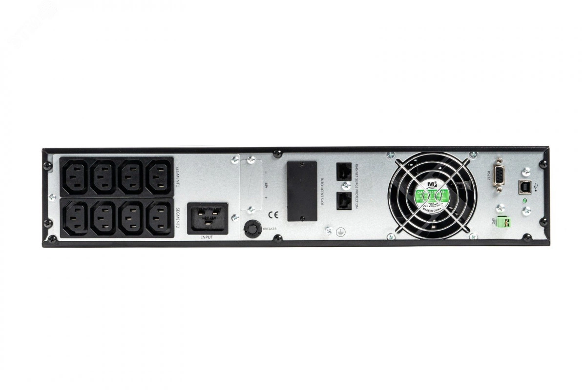 220В, 2000ВА (1800 Вт) On-Line, синусоидальная форма выходного напряжения, световая и звуковая индикация режимов работы, ЖК дисплей. Встроенный АКБ 9Ач, 4 шт, время резерва 3 мин. Количество выходных разъемов — IEC C13 — 8 шт. Дистанционный мониторинг по RS 232, USB, порт для платы релейного интерфейса. Возможность подключения SNMP-модуля DL 801. Функция удаленного аварийного отключения выходного напряжения (EPO). Корпус под 19` шкаф, высота 2U или настольная установка.
