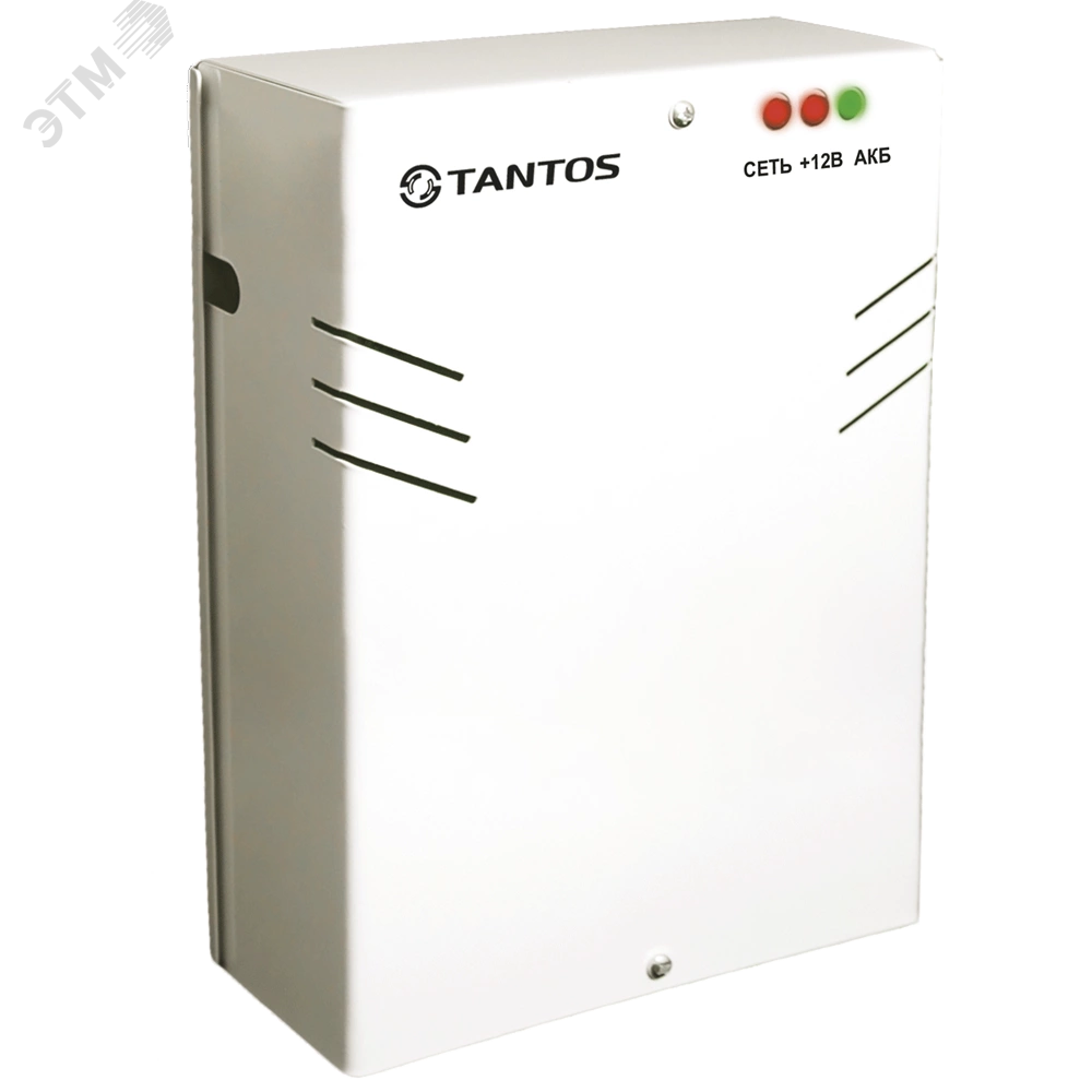 Источник вторичного электропитания резервированный Tantos ББП-50 PRO2 предназначен для обеспечения бесперебойного электропитания потребителей при ном/инальном напряжении 12В постоянного тока и токе потребления до 5А с защитой от глубокого разряда АКБ, электронная защита от КЗ.