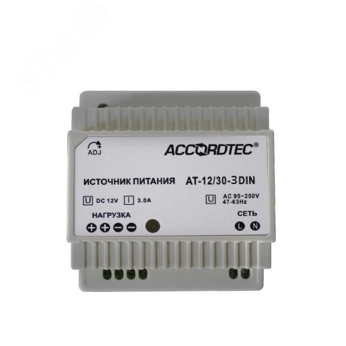 Источник стабилизированного питания с креплением на DIN рейку. Входные характеристики 100-240VAC 50Hz. Выходные характеристики 12VDC (регулируется 10,8-13,8), Iвых