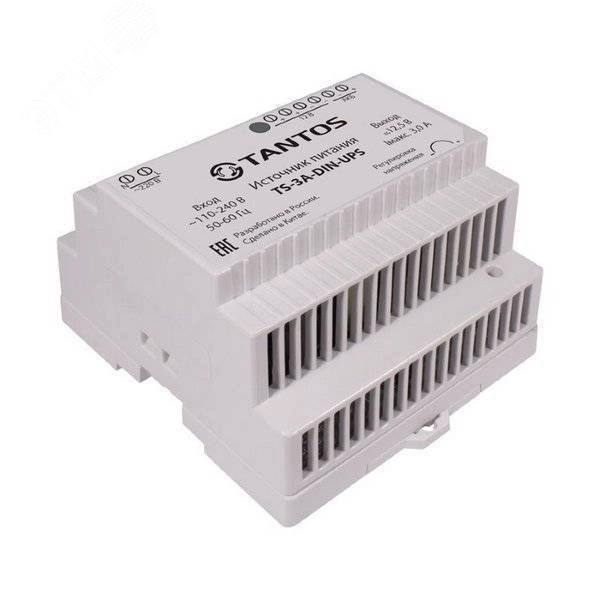 Источник стабилизированного питания резервированный Tantos TS-3A-DIN-UPS 12В, 3А, встроенная защита от короткого замыкания нагрузки, перегрузки по напряжению и току. Возможность подключения резервного аккумулятора ёмкостью 4 - 7 - 12 А·ч. Установка источника питания производится на DIN-рейку.