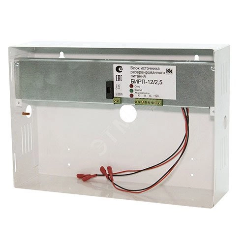 Блок источника резервного питания. Основной источник электропитания сеть переменного тока 150 - 265В 50 Гц, выходное напряжение постоянного тока 13,58 - 13,82 В, номинальный ток нагрузки 2.5 А, максимальный ток нагрузки 3,0 А, под два аккумулятора 12 В/7 Ач, световая индикация - Сеть, Выход, АБ разряженА, Информационные выходы 'оптореле' о наличия выходного напряжения, наличии АБ и наличии сети. Электронная защита от короткого замыкания, защита аккумулятора от глубокого разряда, габаритные размеры 325х225х92 мм, металлический корпус, IP30. вес 3.0 кг