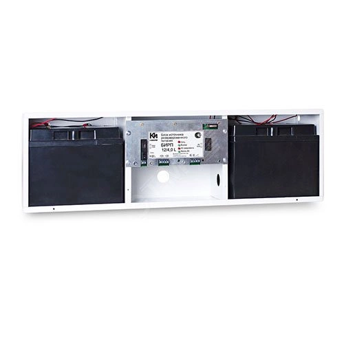 Блок источника резервного питания. Основной источник электропитания сеть переменного тока 150 - 265В 50 Гц, выходное напряжение постоянного тока 12 В, номинальный ток нагрузки 2.5 А, максимальный ток нагрузки 3,0 А, под два аккумулятора 12 В 26-40 Ач, световая индикация - Сеть/Выход/АБ разряжена/Заряд АБ. Информационные выходы 'оптореле' о наличия выходного напряжения, наличии АБ , наличии сети, тампер. Электронная защита от короткого замыкания, защита аккумулятора от глубокого разряда. Форсированный заряд АБ, габаритные размеры 654х210х175 мм, металлический корпус, IP30. вес 10.0 кг