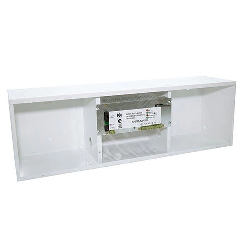 Блок источника резервного питания. Основной источник электропитания сеть переменного тока 150 - 265В 50 Гц, выходное напряжение постоянного тока 12 В, номинальный ток нагрузки 4.0 А, максимальный ток нагрузки 4,5 А, под два аккумулятора 12 В 26-40 Ач, световая индикация - Сеть/Выход/АБ разряжена/Заряд АБ. Информационные выходы 'оптореле' о наличия выходного напряжения, наличии АБ , наличии сети, тампер. Электронная защита от короткого замыкания, защита аккумулятора от глубокого разряда, габаритные размеры 654х210х175 мм, металлический корпус, IP30. вес 10.0 кг