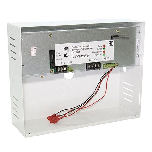 Блок источника резервного питания. Основной источник электропитания сеть переменного тока 150 - 265В 50 Гц, выходное напряжение постоянного тока 12 В, номинальный ток нагрузки 6.0 А, максимальный ток нагрузки 6,5 А, под два аккумулятора 12 В/12Ач, световая индикация - Сеть/Выход/АБ разряжена/Заряд АБ. Информационные выходы 'оптореле' о наличия выходного напряжения, наличии АБ , наличии сети, тампер. Электронная защита от короткого замыкания, защита аккумулятора от глубокого разряда. Клеммные колодки барьерного типа, габаритные размеры 320х250х115 мм, металлический корпус, IP30. вес 5.0 кг