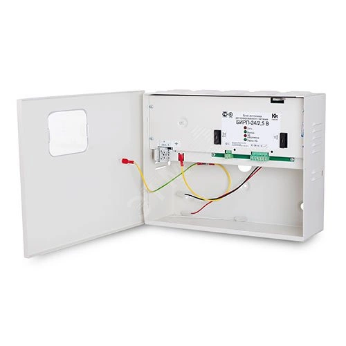 Блок источника резервированного питания трансформаторный, с силовым реле 'контроль сети', 12 В ± 0,12%, 2,5 А, кратковременно до 3,0 А, под 2 шт. АКБ - 12,0 Ач.