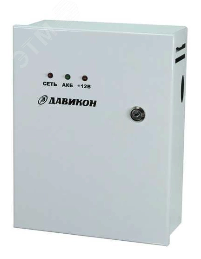 Источник вторичного электропитания резервированный Давикон ИВЭПР-1280С-17 (ББП-80С-17) рассчитан на круглосуточный режим работы. Обеспечивает автоматический переход на питание от аккумулятора при отсутствии напряжения сети. Конструктивно источник питания размещен в металлическом корпусе с открывающейся передней крышкой. Имеется возможность установки АКБ ёмкостью 17А/ч или 2x12А/ч, напряжение 13,5 В, номинальный ток 8 А, максимальный – 8,5 А.