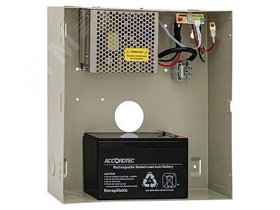 AccordTec ББП-30 (исп. 2) блок бесперебойного питания в корпусе, предназначенном для установки АКБ емкостью 17Ач, предназначен для бесперебойного питания устройств и приборов охранно-пожарной сигнализации, активных датчиков, систем видеонаблюдения, электромагнитных и электромеханических замков, а также другой аппаратуры с напряжением питания 12V.