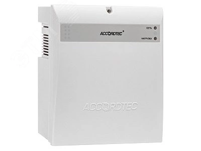 Источник вторичного электропитания AccordTec ББП-40 исп.1, резервированный. Напряжение питания от сети переменного тока частотой 50 Гц 165...264 В, выходное напряжение постоянного тока 13.4...13.8 В, номинальный ток нагрузки 4 А. Рекомендуемый аккумулятор 12 В 7 Ач, есть световая индикация режимов работы, защита аккумулятора от глубокого разряда. Габаритные размеры бесперебойного блока питания ББП-40 исп.1 составляют 170x160x77 мм. Модель выполнена в пластиковом корпусе. Её вес равен 560 г.