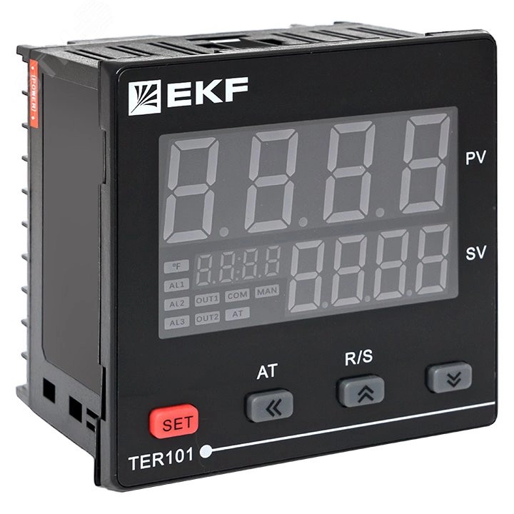 Микропроцессорные устройства, предназначенные для контроля и автоматического регулирования параметров технологических процессов. Приборы TER101 могут использоваться для измерения и регулирования различных параметров в системах отопления, водоснабжения, в печах, сушильных шкафах, пастеризаторах, терпопластавтоматах, экструдерах, в холодильной технике и другом технологическом оборудовании. Устройства универсальны и могут работать в режиме измерителя, ON/OFF-регулятора и ПИД-регулятора. В режиме регулятора прибор может работать как для нагрева, так и для охлаждения контролируемой среды. В режиме ПИД-регулятора устройство имеет возможность как ручной, так и автоматической настройки. Устройство имеет 1 вход для измерения, 1 выход для управления и до 2-х выходов для сигнализации. Выходы сигнализации также можно использовать в качестве выходов управления. Встроенный интерфейс RS-485 (протокол Modbus RTU) позволяет использовать TER101 в распределенных системах диспетчеризации.