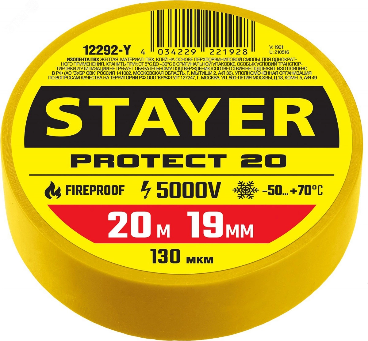 В нашем интернет-магазине вы можете купить Изолента Protect-20 19 мм х 20 м желтая в Екатеринбурге, артикул 12292-Y. Чтобы уточнить условия оплаты, доставки и действующие скидки на товар, свяжитесь с нашим менеджером по телефону +7 (343) 266-30-88.