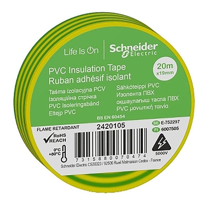 Полное описание: Изолента ПВХ 19мм (рул.20м) желт./зел. SchE IMT38205