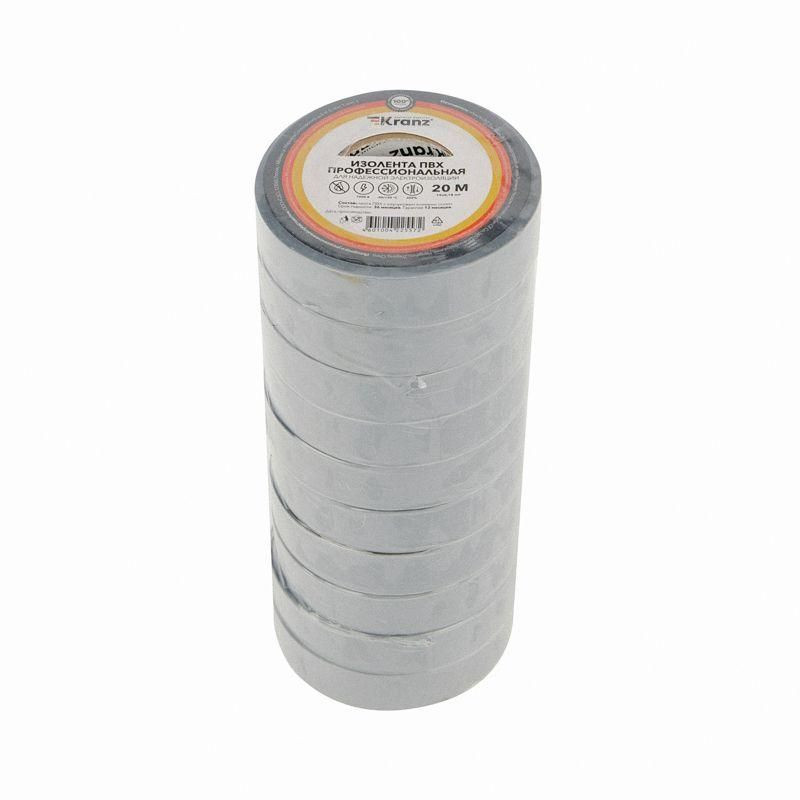 Изолента ПВХ профессиональная 0.18х19мм 20м сер. Kranz KR-09-2808